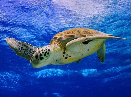السلاحف البحرية، وتعيش في المحيطات الاستوائية وشبه الاستوائية في جميع أنحاء العالم , وقد يطول عمرها لأكثر من 150 عاما , ويبلغ وزنها 400 كيلو .