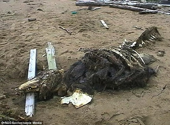 عثرت القوات الخاصة الروسية، على بقايا هيكل حيوان غريب غير معروف، يتميز بجسد طويل يغطيه الفراء، وأنياب حادة تجعله يبدو وكأن مخلوق خرافي، من أفلام الرعب والخيال العلمي. وشعر السكان المحليون في جزيرة سخالين بالحيرة، بعد العثور على الحيوان بالقرب من شواطئ الجزيرة الواقعة شرقي روسيا، وسارعت القوات الخاصة الروسية إلى نقل الهيكل للمختبرات لإجراء دراسات معمقة لمعرفة نوع هذا الحيوان. وعلى الرغم من أن النظريات الأولية، افترضت أن الهيكل يعود لحيوان منقرض يعود لما قبل التاريخ، إلا أن الأبحاث بينت أن هذه العظام تعود في الواقع لحوت أبيض ضخم بحسب صحيفة دايلي ميل البريطانية. لا ينتمي للأسماك أو التماسيحوكانت الصور الأولية للهيكل ظهرت لأول مرة عام 2006، قبل أن يتم إزالته من على الشاطىء من قبل القوات الخاصة الروسية، وأظهرت الاختبارات الأولية على العظام والأسنان أن هذا المخلوق ليس نوعاً من أنواع الأسماك أو التماسيح. وقيل أيضاً أن طول الحيوان يصل إلى حوالي 20 قدماً ولديه جلد مغطى بالشعر والفراء، ولكن بعدما اطلع خبراء الحيوانات البحرية على صور جمجمة الحيوان، أكدوا أنها تعود لأحد الحيتان البيضاء التي تسبح في المنطقة. كما نشر الخبراء صوراً لجمجمة الحوت، لإظهار مدى لتشابه بينها وبين جمجمة المخلوق الذي عثر عليه بالقرب من الشاطىء. وقبل التأكد من أن الحيوان هو مجرد حوت أبيض، خرجت العديد من الفرضيات، ومن بينها أن الهيكل يعود لحيوان البلصور، وهو حيوان بحري عاش ما قبل التاريخ في العصر الترياسي.